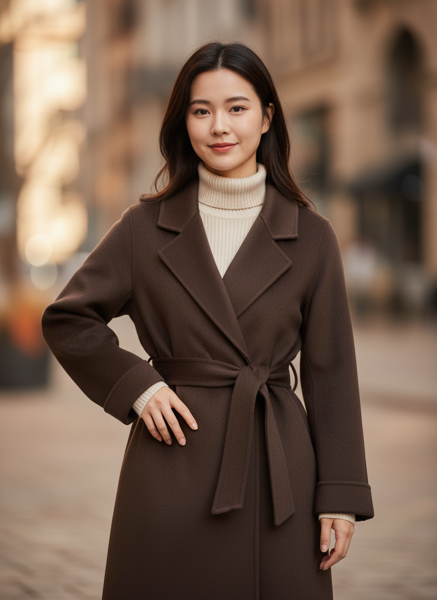 Extra-Long Double Wool Coat With Detachable Shawl Collar
