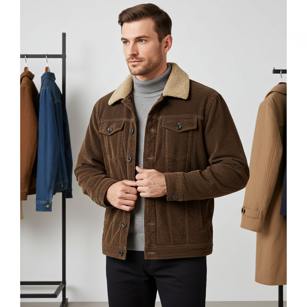 Thick Ribbed Velvet Jacket with Warm Lining
